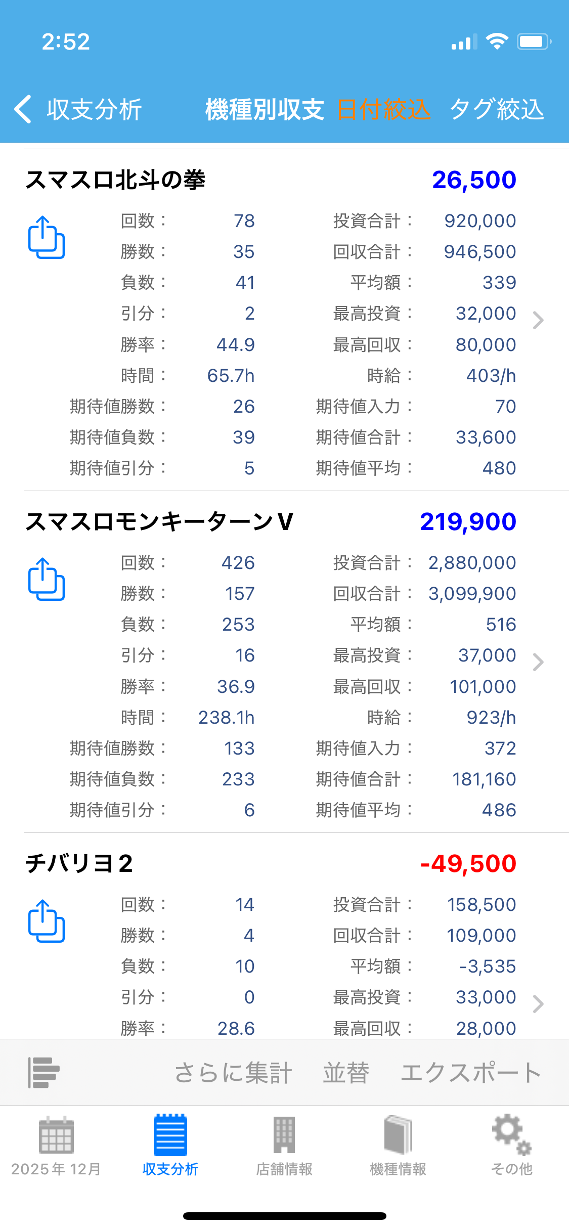 スロット、パチンコ トータル収支